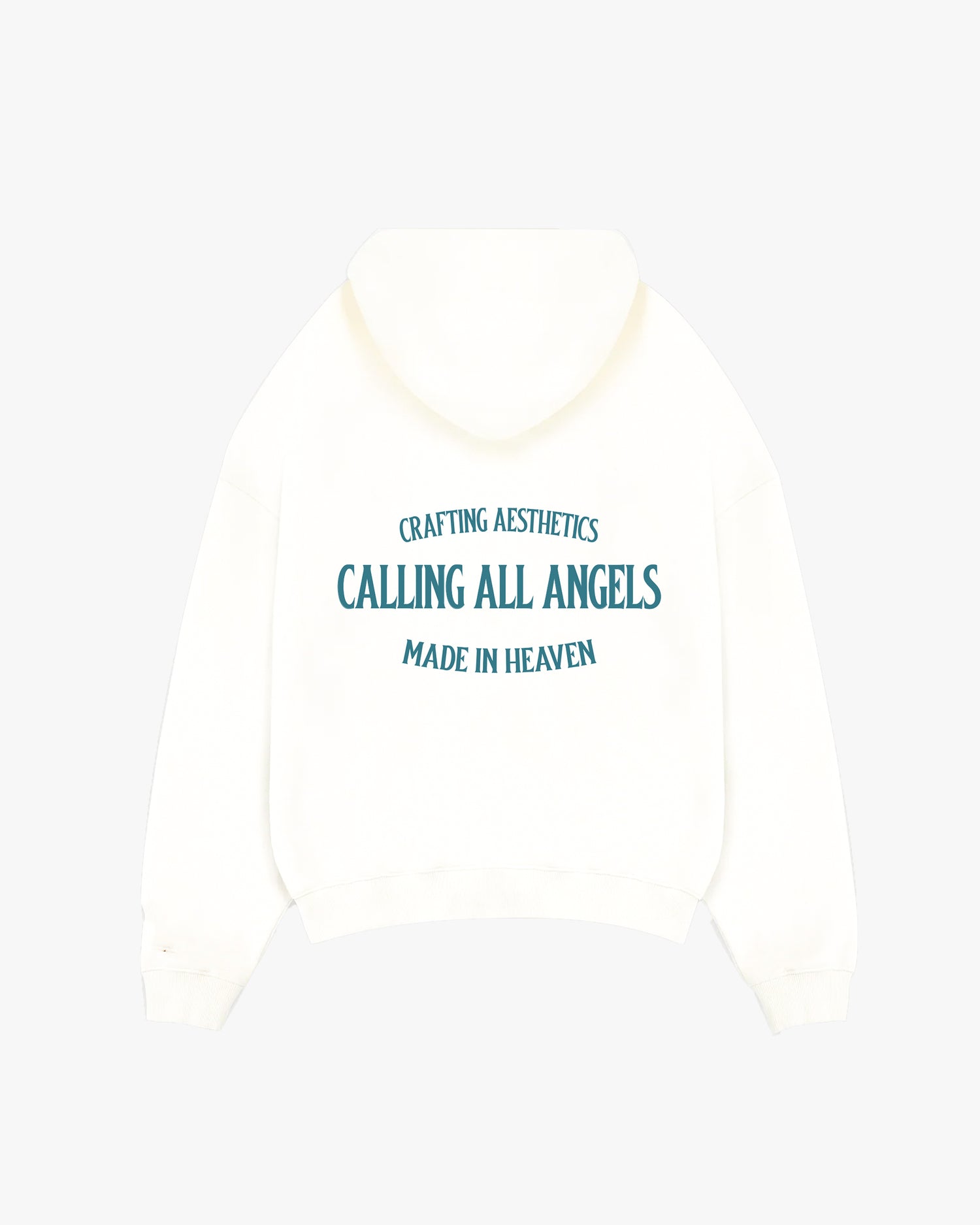Unisex full zip hoodie is crafted of cotton fleece that is dyed and washed for a soft hand-feel. It features Calling All Angels stamp logo, a rib at the sleeve cuffs and the hem, zipper closure, and welt pockets on the sides.