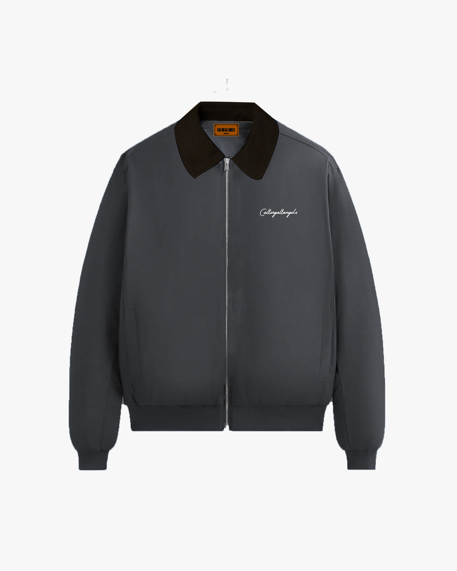Full zip bomber jacket is crafted of cotton fleece that is dyed and washed for a soft hand-feel. It features contrast suede collar, Calling All Angels signature logo at chest, a rib at the sleeve cuffs and the hem, zipper closure, and welt pockets on the sides.